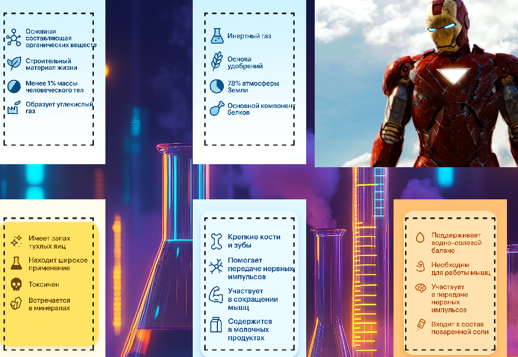 Elementorium — это интерактивная 2D-игра, в которой игроки должны правильно подбирать химические элементы по их свойствам. Перетаскивайте карты, изучайте свойства реальных элементов и тренируйте память — всё это весело и с красивой анимацией.